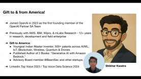 Hi, I’m Shikhar Kwatra, Partner Solutions Architect at OpenAI. My gift to America began with becoming the youngest Indian Master Inventor—earning 500+ patents across AI, ML, IoT, Blockchain, Quantum, and more. Through relentless innovation and knowledge sharing, I authored “Generative AI with Amazon Bedrock”, helping democratize GenAI across industries. But the real gift has been twofold: while I’ve contributed ideas and inventions, America gifted me the opportunity to work with brilliant minds from diverse backgrounds. Every interaction is a two-way street—of teaching and being taught. This journey is not just about personal milestones, but about building a shared future powered by collaboration, technology, and inclusive innovation. Thank you, ASEI, for letting our voices be heard.